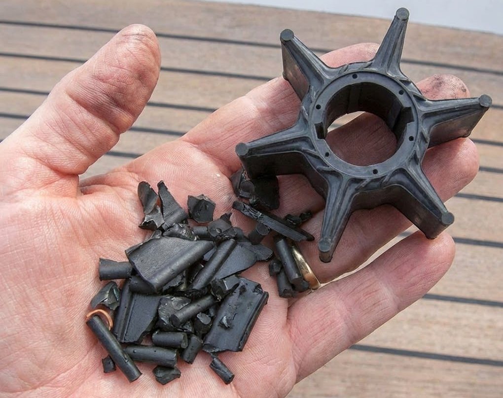Если двигатель запускают без воды либо когда впускное отверстие забито водорослями, грязью или мусором, крыльчатка быстро перегревается. Трение мгновенно нагревает детали, вызывая их плавление или разрыв.
