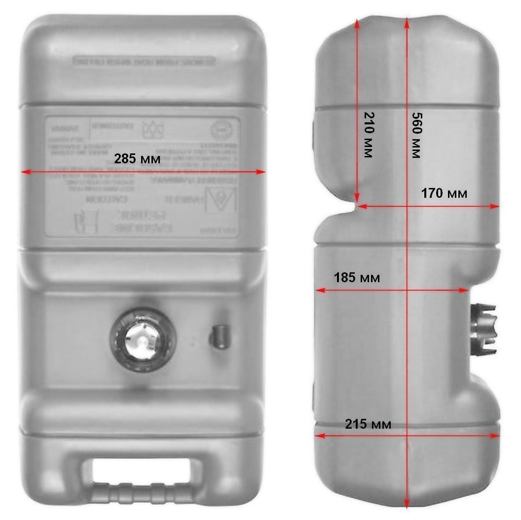 Родной бензобак от Ямахи не поместился в рецесс Казанки 5М4. Данный бак на 23 литра встал на место отлично, удобная ручка, легко доставать. Указатель уровня также полезная вещь - в любое время под контролем остатки топлива в баке. Качество материалов не вызывает нареканий.