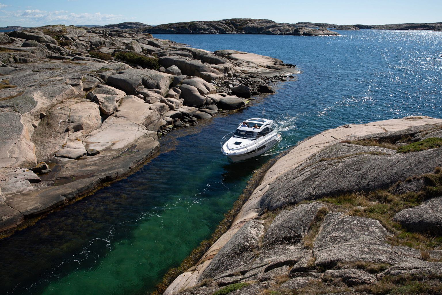 • Жёсткая крыша с панорамным люком защищает от зноя и даёт обзор 360°, а открытая корма дарит ощущение свободы.