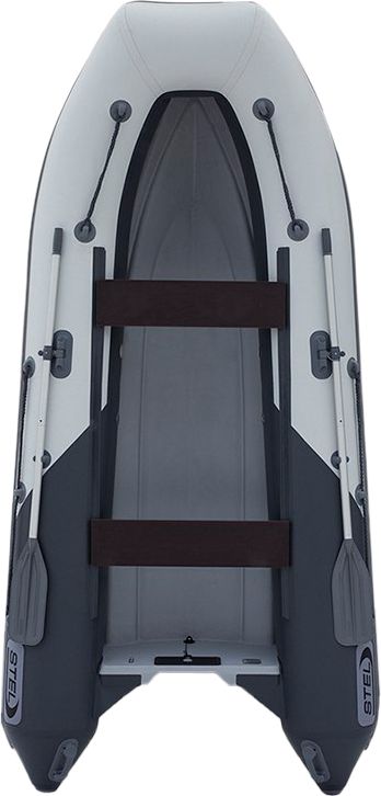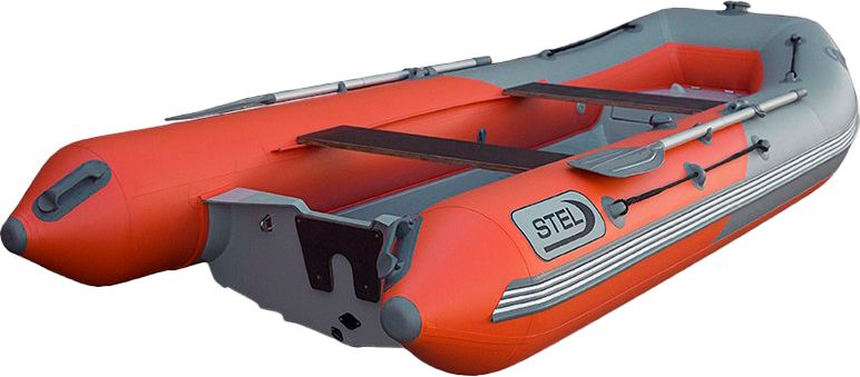 Лодка РИБ (RIB) STEL R-375, серый/оранжевый, накладки на рундук и банки, защита киля, корпус серый
