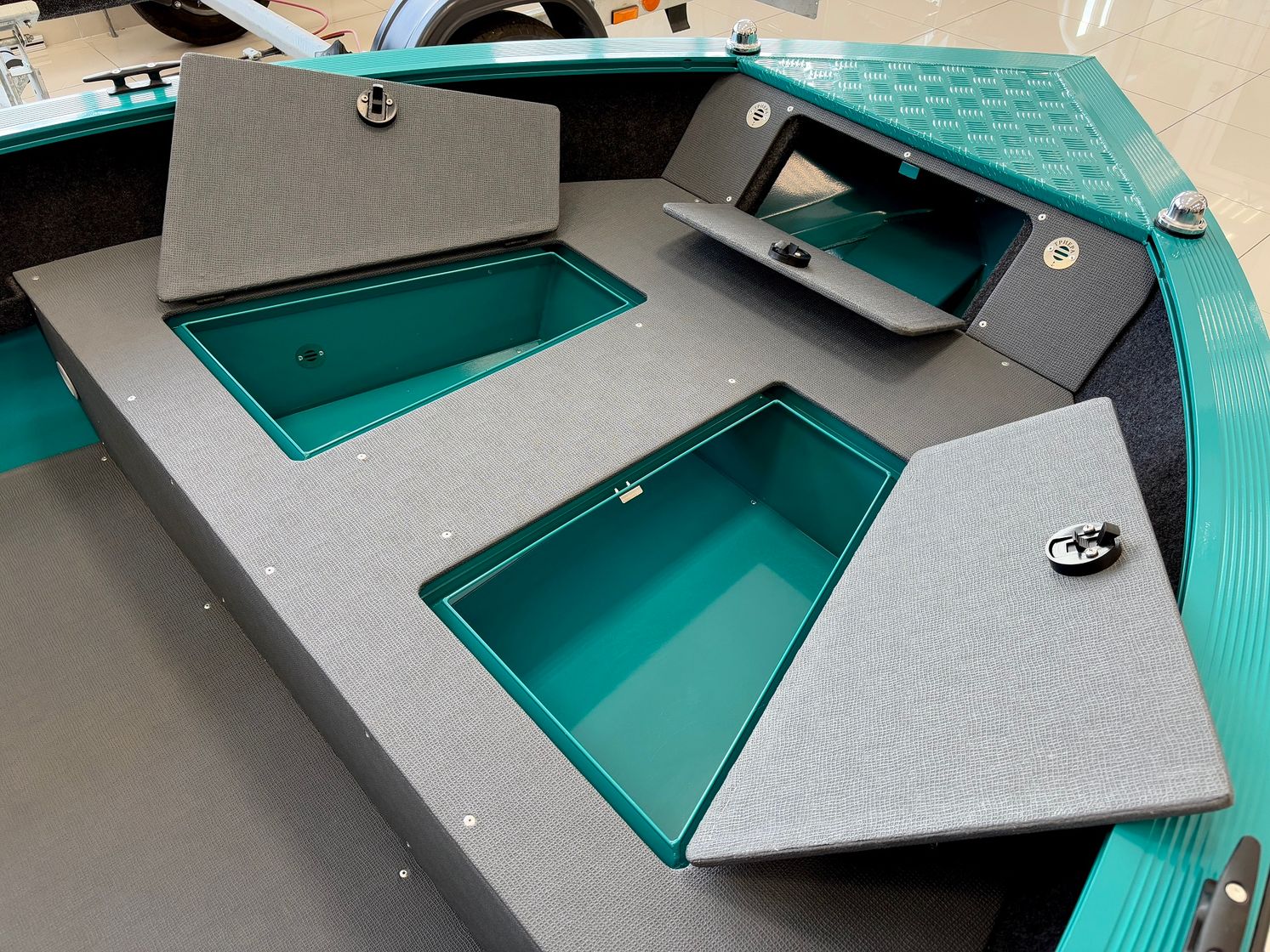 Планширь оснащен универсальным Т-пазом, позволяющим быстро и надежно крепить дополнительное оборудование — от держателей удочек до навигационных приборов. Привальный брус защищает корпус при швартовке и маневрировании, снижая риск повреждений и продлевая срок службы лодки.