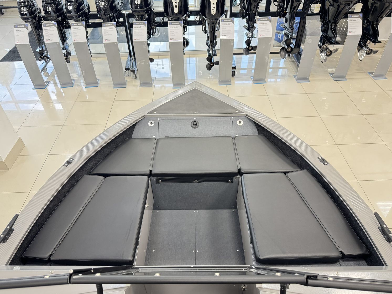 Открытая палуба “Боурайдера” позволяет не только перевозить крупногабаритные предметы, но и организовывать комфортную зону отдыха с мягкими накладками, а свободный проход обеспечивает удобство перемещения по палубе. Боковые сухие рундуки обеспечивают безопасное хранение вещей от воды и брызг.