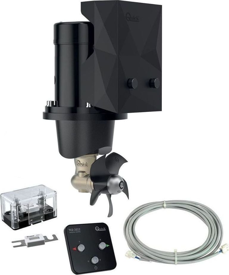 Подруливающее устройство Quick оснащено винтом из прочного и износостойкого пластика. Такой материал обладает высокой устойчивостью к коррозии и механическим воздействиям.