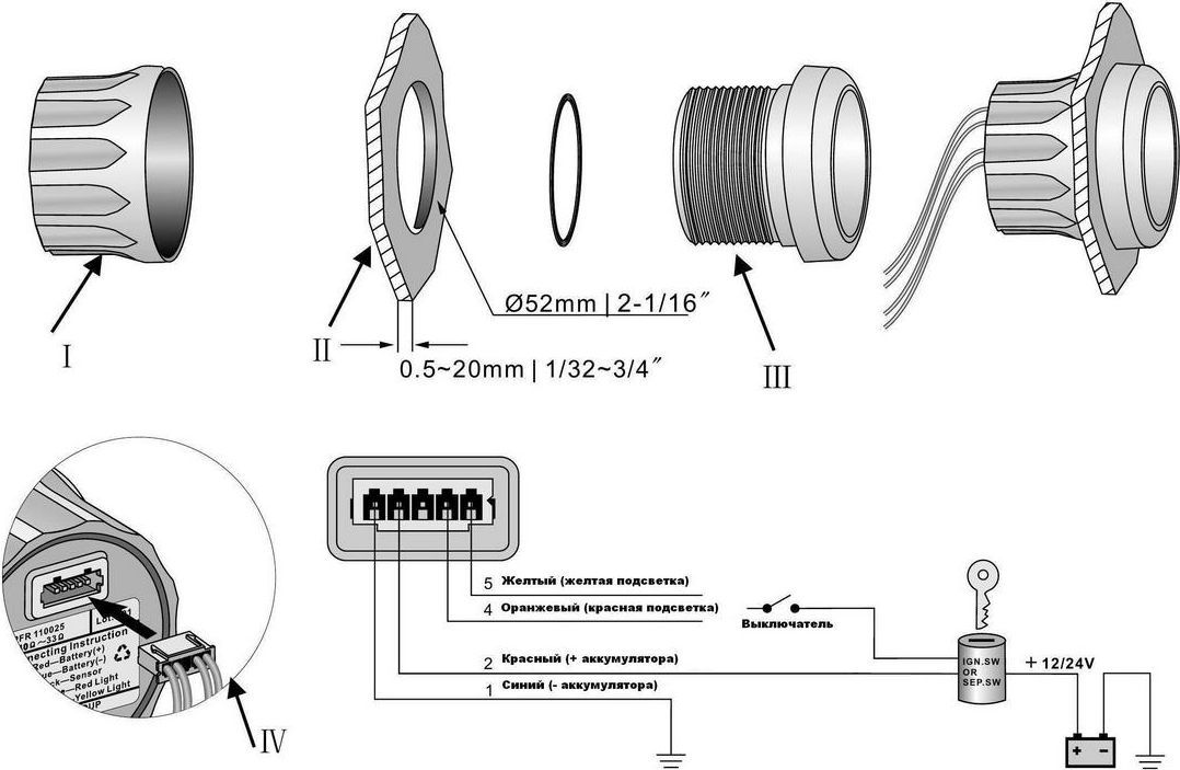 | Монтажный вырез | 52 мм |