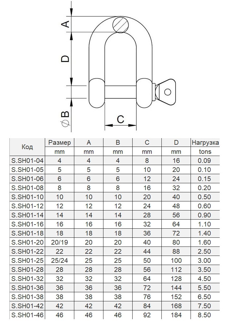 Скоба такелажная, 10 мм Marine Rocket