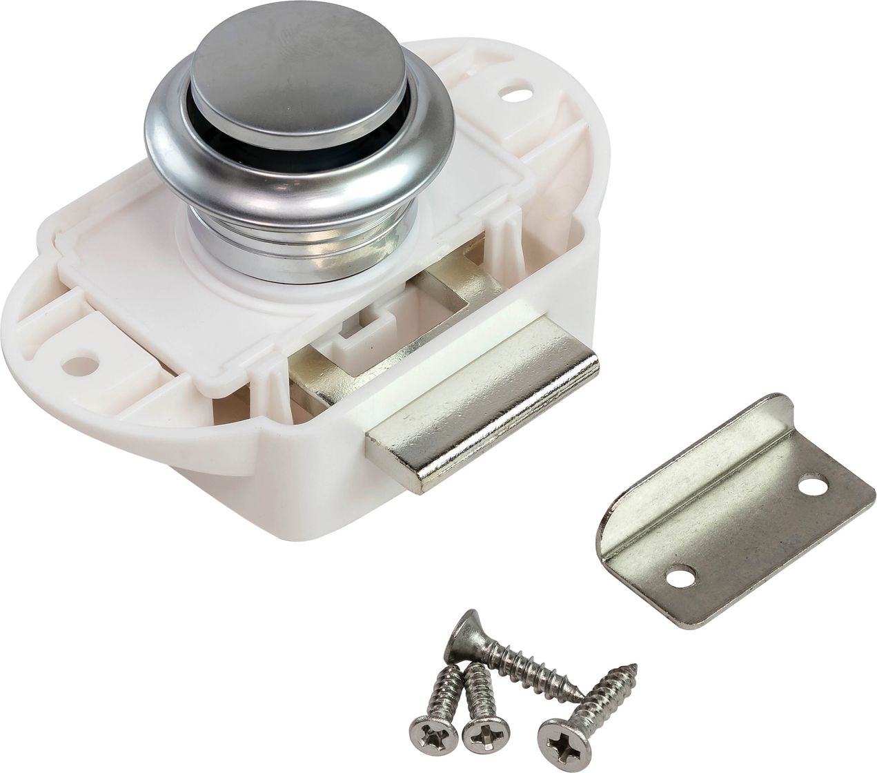 Замок дверной врезной, жемчуженый хром, белый корпус, D26мм